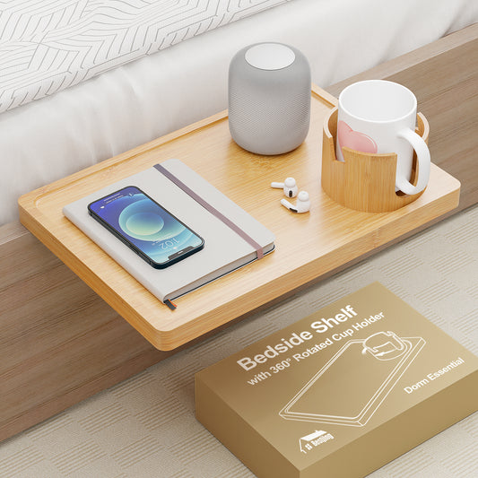 Bestjing Bedside Shelf with 360°Rotated Cup Holder for Bunk Bed & Top Bunk, College Dorm Room Essentials, Clip On Nightstand, Floating Bed Side Table Tray Caddy Organizer, Minimalist Dorm Room Decor