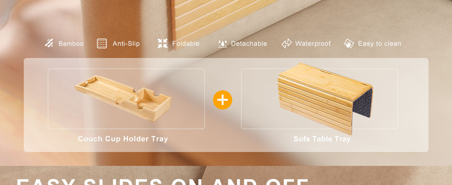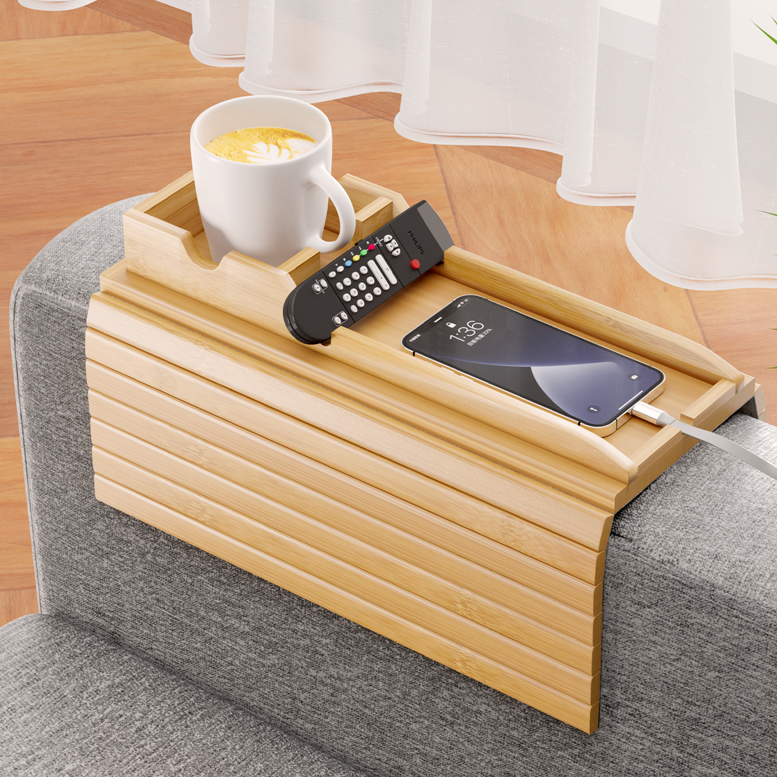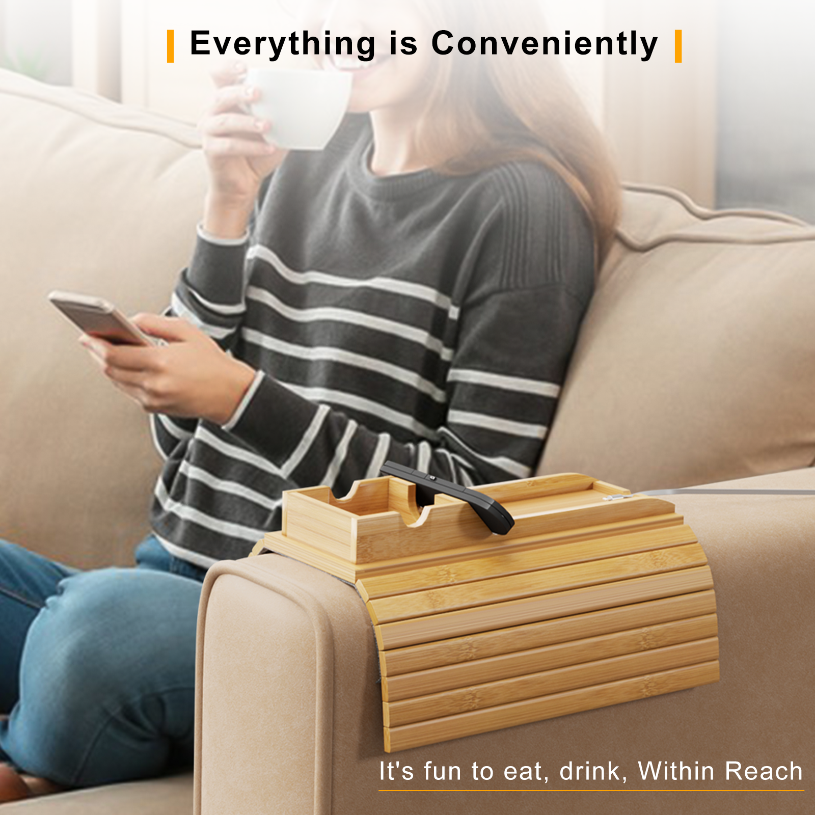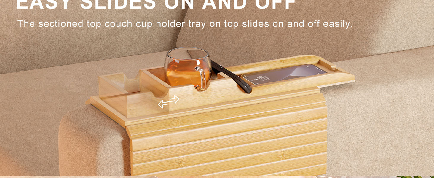 - ✅【Sofa Table Tray Made with 100% Natural Bamboo】Bestjing couch cup tray is made of Premium quality real bamboo is safe and durable and does not contain any harmful materials, The plain bamboo color is also easy to match with your sofa, bringing more natural flavor to your living room.